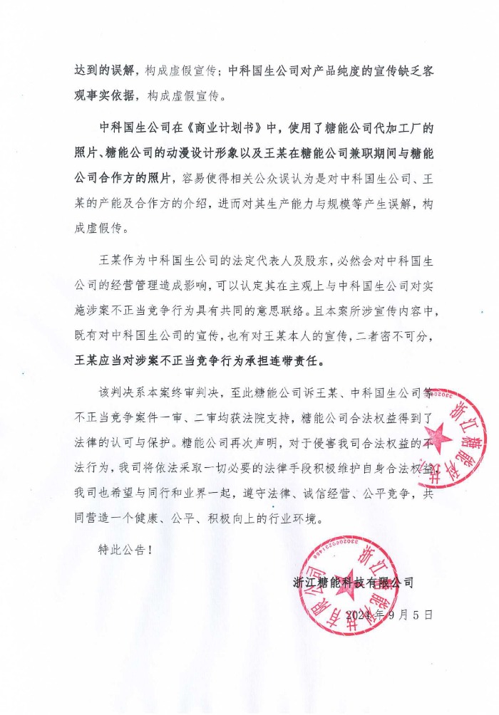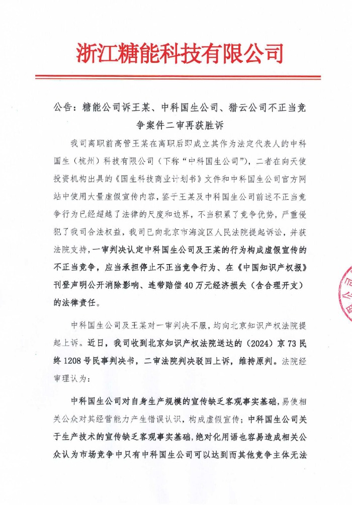 Annoncering: Sugar Energy vandt den anden retssag i sagen om unfair konkurrence mod Wang, Zhongke Guosheng Company og Lieyun Company
